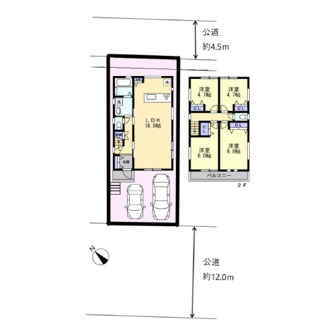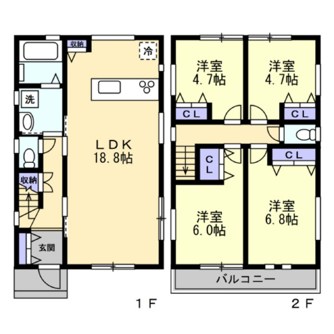 (1F)LDK18.8、(2F)洋6.8、洋6.0、洋4.37×2 |