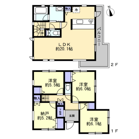 (1F)洋6.0×2、洋5.5×2、(2F)LDK20.1 |
